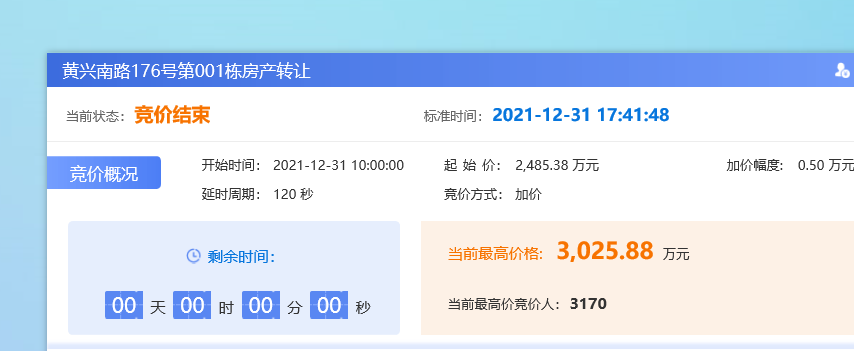 長沙聯(lián)交所在接洽該項目時,委托方要求趕在年底前完成資產(chǎn)處置,時間緊任務(wù)重。受理項目后,長沙聯(lián)交所迅速行動,全力搶抓時間節(jié)點,組織專業(yè)團隊對標的物現(xiàn)狀進行全方位調(diào)查,充分掌握房產(chǎn)的相關(guān)信息;為項目啟動“綠色通道”,加快掛牌資料的審核并積極協(xié)調(diào)各方,在最短的時間內(nèi)完成項目掛牌。項目掛牌后,長沙聯(lián)交所又針對項目情況定制招商方案,通過公司官網(wǎng)官微、投資人庫精準推薦等線上線下多渠道廣泛宣傳,征集到多名意向受讓方。面對意向受讓方的多番咨詢,安排專人講解,協(xié)助客戶完成前期報名等手續(xù),提供全天候無差別優(yōu)質(zhì)服務(wù)。網(wǎng)絡(luò)競價當天,意向競買人熱情高漲,從上午10點到下午5點41分,歷時7小時41分,競價輪次高達428次,最終以3025.88萬元順利成交,超出掛牌價540.5萬元,溢價率21.7%。